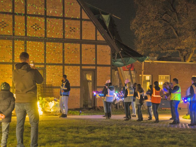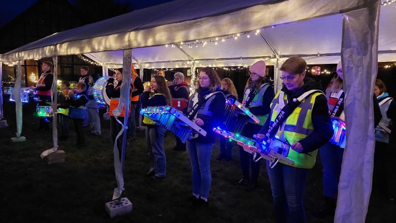 Gegen 17.00 Uhr trafen die Marching Colors aus Bardowick ein. Der Spielmannszug marschierte mit beleuchteten Instrumenten durch den Innenhof und brachte traditionelle Lieder und moderne Popkultur zum Besten.