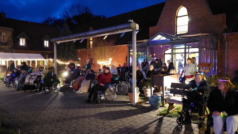 Unsere Bewohner erhielten vorab Überraschungstüten mit unserem Tagesmotto, einer kleinen Nascherei und Knicklichtern. Diese wurden bei Beginn der Musik zum Leuchten gebracht, sodass alle unsere Bewohner die Darbietung ebenfalls beleuchtet erwarteten.