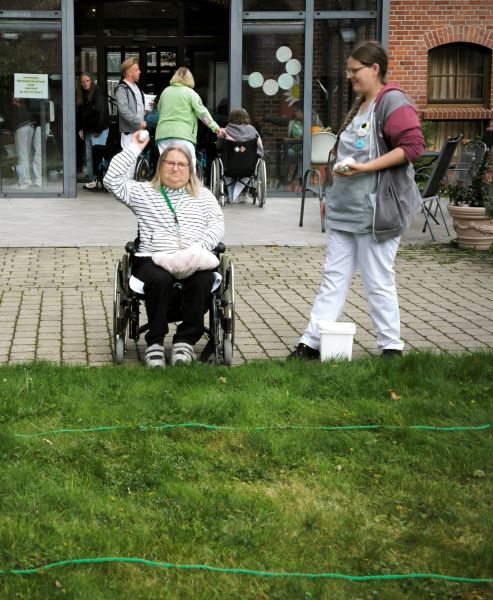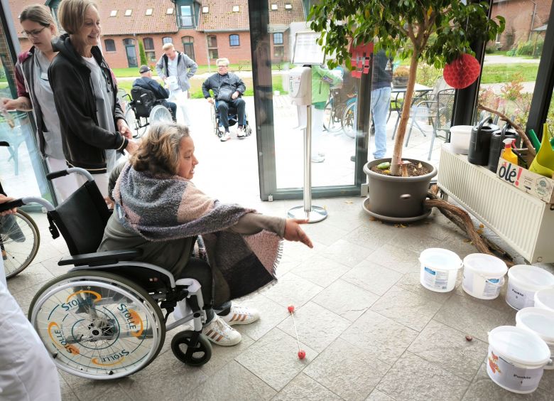 Mit herbstlichen Hilfsmitteln wurde ein bunter Nachmittag zelebriert. Ob in einem Eimer voller Kastanien einen Golfball suchen oder Kartoffel-Weitwurf – unsere Bewohner waren begeistert voll dabei!